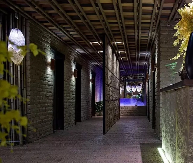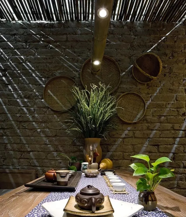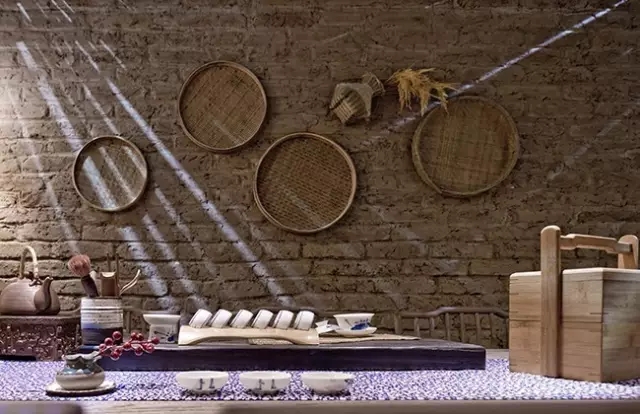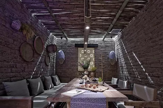 一个用以细品慢用,享受时光的空间,自然需要原汁原味的设计。而纯天然的材料,如竹,瓦,土则构成了本案主要的材料。而色调则是旧旧的黄和暗暗的红。