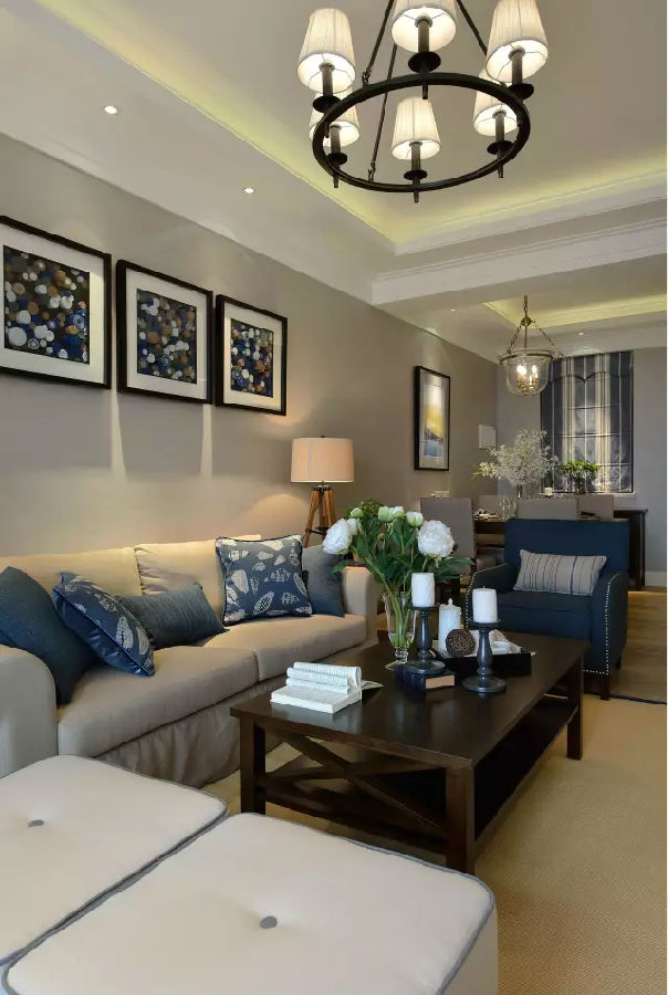 很喜欢的是整体的灯光效果,吊灯、射灯、壁灯、落地灯也是和谐搭配,桌上的小白花也是散发着一股清新的芳香。
