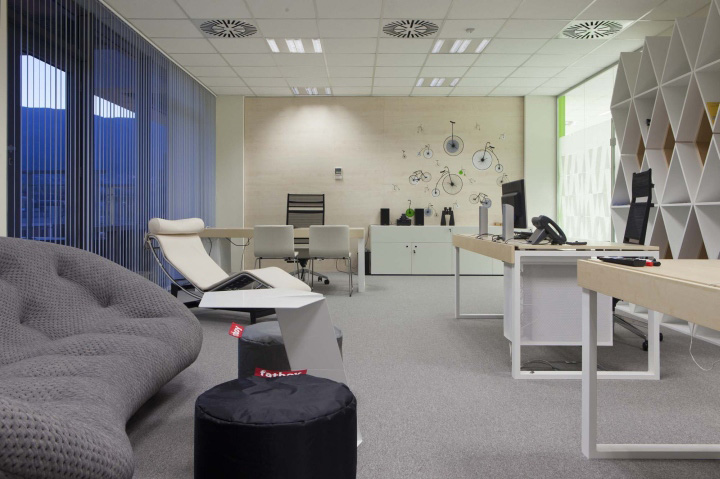 另外,由于企业会经常出现人员流动和部门变动的情况,或随着企业的逐渐壮大,甚至整体公司的结构都可能发生改变,所以办公区的结构设计需要具备很强的外延性。在这一点上,我们建议客户采取开放式分布办公桌的方式。在线路上,我们采用预留墙、地插的措施,以适应客户公司未来发展的需要,对各个办公室装饰都在保证其相对统一风格的基础上,留下改造的余地以应付以后可能出现的机构变动。