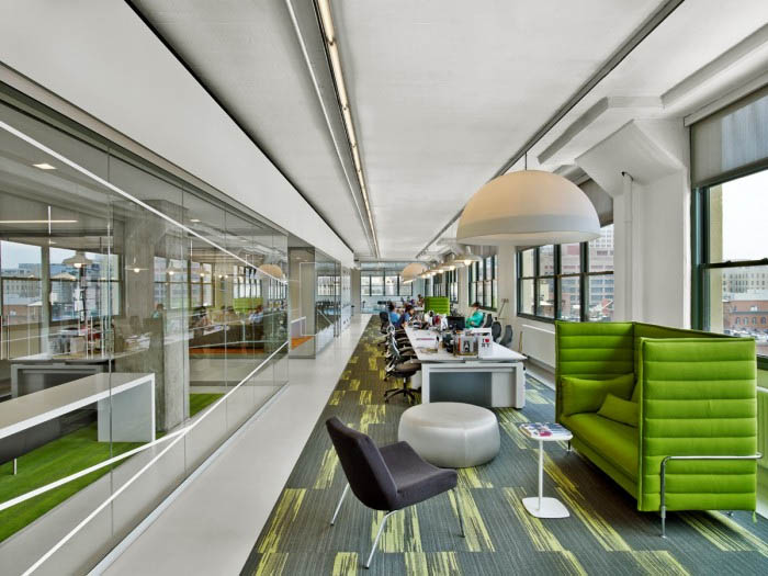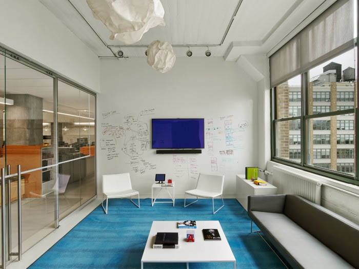 2、黄色系搭配色白色、黑色、绿色、蓝色、橙色。需要经常讨论的办公室,工作人员思维要活跃,就需要使用明亮、鲜艳的颜色来作为点缀,以刺激工作人员的想象力。