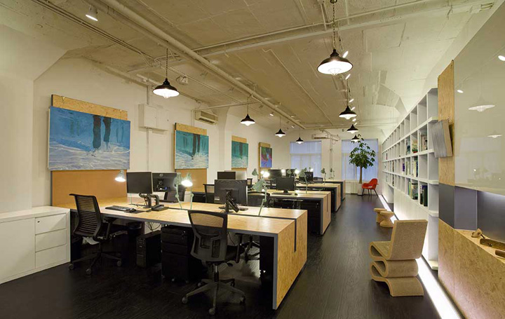 办公室装饰--格栅结构把同样的空间较为规整地集中到一起,一般由环流路线所框定。格栅结构的尺寸大小不一,可以利用环流通道交叉的角度的不同来塑造视觉中心。如餐厅中部较大公共空间内桌椅的规整布局就是一个典型的例子,但这种手法如果使用过多,就会使人产生单调、乏味、刻板的心理感受。通州装修公司