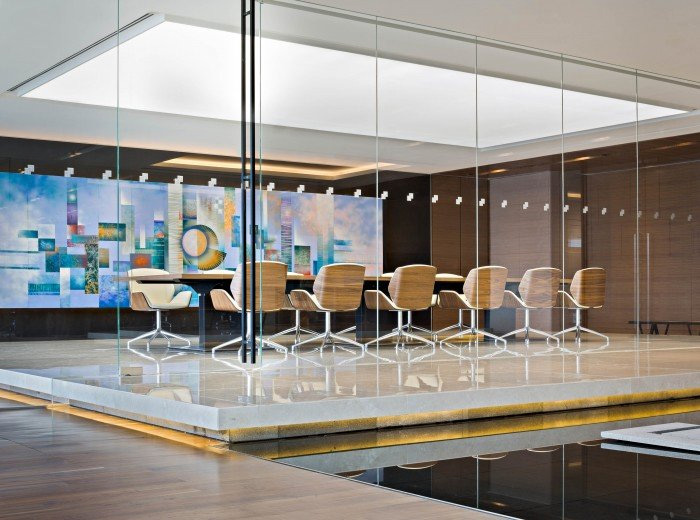 优质的企业形象是企业价值的重要组成部分,在办公空间中建立并突出企业形象无论对内还是对外都有重要的意义。设计是有关企业视觉形象识别的设计,包括企业名称、标志、标准字体、色彩、象征图案、标语、吉祥物等方面。在办公空间中,办公室设计主要体现在企业形象墙、接待台、会议室、展示区、公告栏、领导办公室、室内指示系统、办公用具、工作服等方面。