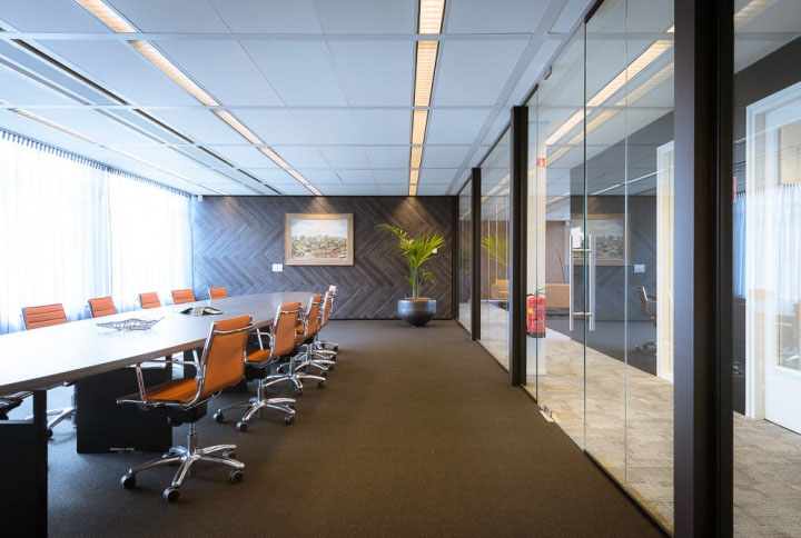 5、隔断高度的设置:对于高档办公室中干式隔断的高度从经济的角度讲是有分别的:总经理办公室、会议室、机房和财务室的隔断一般要做到结构顶,石膏板隔断中还要采用镀锌钢板作为衬垫;对于办公室装饰后需挂画的位置在装修设计时,还得考虑日后安装画等装饰品预埋在隔断内的小木方等材料。--北京装修公司