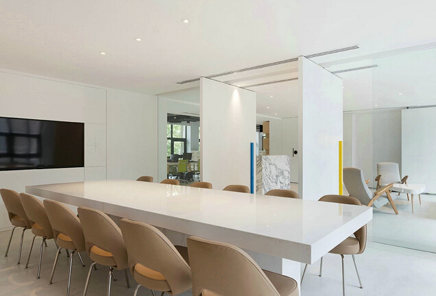 办公室装修室内设计旨在创造一个良好的办公室内环境。一个成功的办公室装修室内设计需要对室内划分平面布置、界面处理、采光及照明、色彩的选择、氛围的营造等方面进行通盘的考虑。