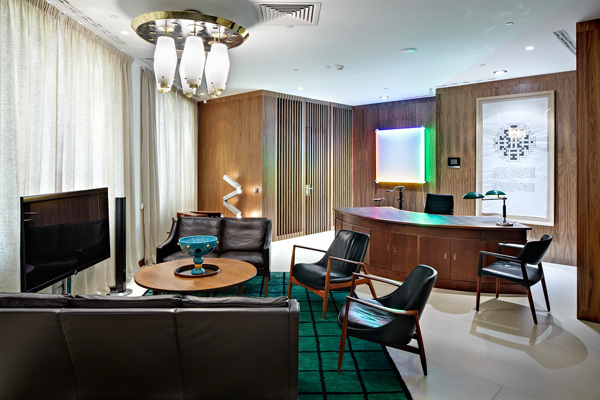 (1)、休闲空间:休闲及会客区是办公室的灵魂,应是重头戏,都愿花重金着墨和铺设。有的分视听、休闲、会客等部分,地板、墙面、天池讲究色彩、平衡和协调,四周的装饰追求简约、典雅和品位;对刻意的雕饰、繁缛和金粉之气,宾馆化、舞厅化倾向日益摈弃;对灯具、灯光的选择,各类艺术品质量、布局都很考究。