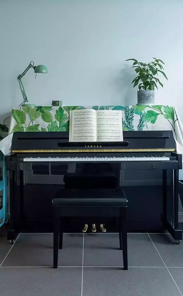 ▲有爱好的人,一定会把生活经营得特别有意思吧!会弹钢琴,这是多少人梦寐以求的呀。台灯,绿植,遮尘布,都是绿意浓浓的样子。