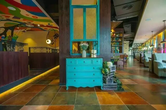 各种文艺、怀旧的小饰品为空间增色不少,墙壁上的波普艺术涂鸦为整个空间带来活力。时尚舒适第一,家具及桌椅面料多选用皮革、布艺为主,配上抱枕点缀,沙发可以躺着,窝着,舒适感十足。